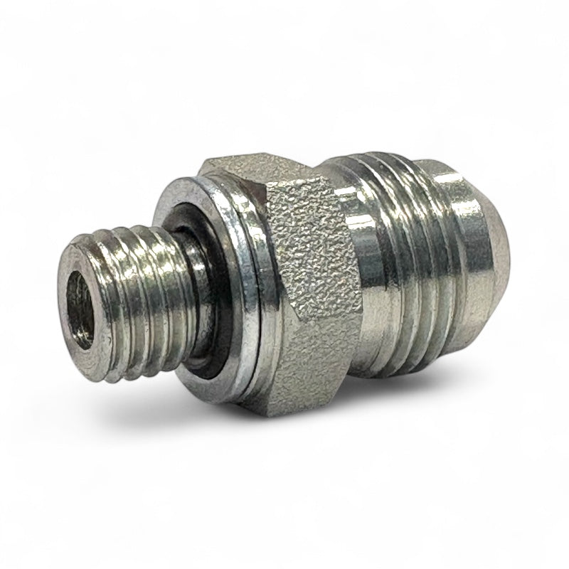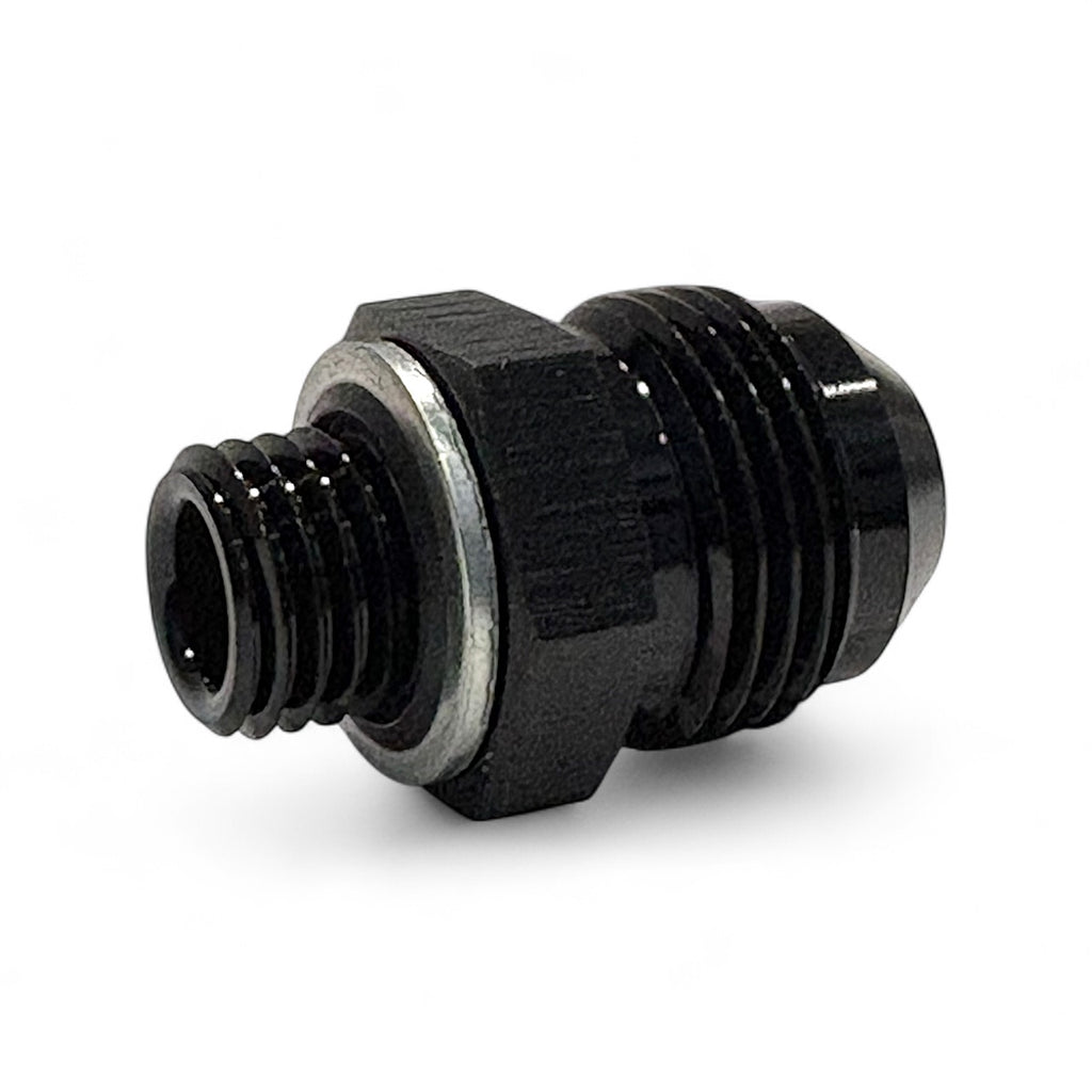 This fitting will adapt metric threaded connections to accept 8AN plumbing. This metric size is often used in GM and Dodge fuel systems. Aluminum fitting includes rubber bonded sealing washer. Steel fitting includes o-ring/washer seal.