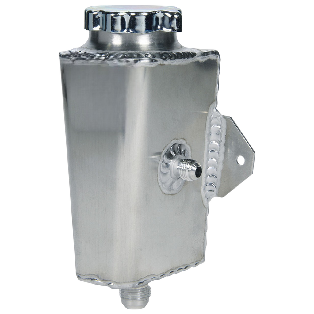 This universal aluminum tank works perfect as a power steering reservoir. Remote mounting your reservoir can free up power steering pump mounting options and increase the available space in front of the engine.