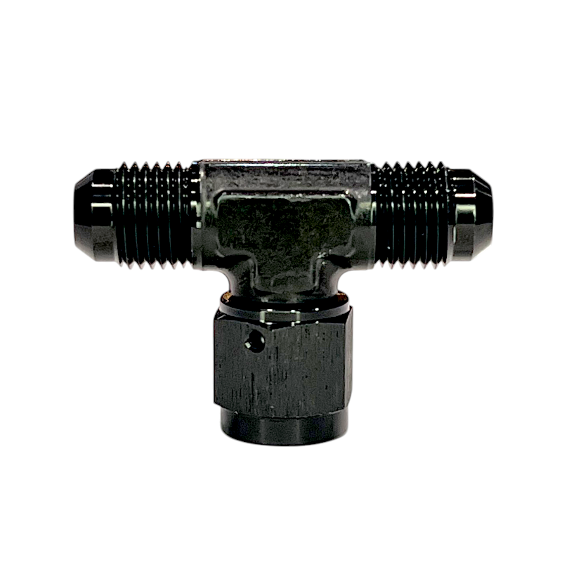 Simply plumbing by utilizing a tee to join multiple hoses. These tees work great in fuel return and fuel feed systems. Constructed from black anodized billet aluminum.