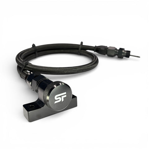 Shockers locking Ford F-150 transmission dipstick is the perfect addition to any street, strip or driver. This dipstick is a must have for anyone looking to keep an eye on their fluid level without a trip to the dealer! Our simple and effective threaded handle lock has no small parts, springs, or clips. Each stick is hand assembled and inspected for quality and functionality.